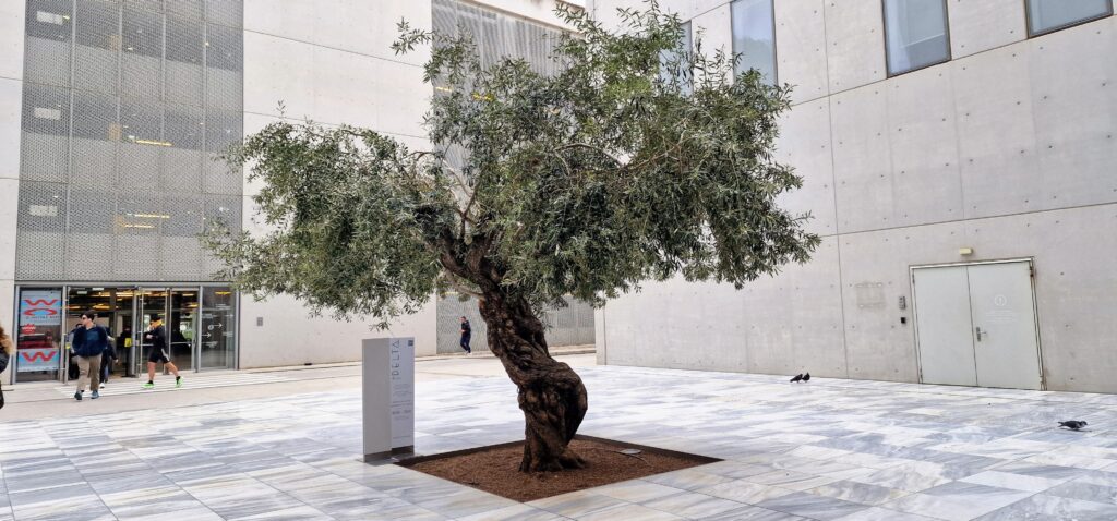 Kurssilla vierailimme Stavros Niarchos Kulttuurikeskuksessa. Tässä bioarkkitehtuurin helmessä on tilaa Kreikan kansalliskirjastolle ja -oopperalle, sosiaalisesti osallistavalle toiminnalle sekä yli 200 000 neliömetrin ilmastokestävälle puistolle. Kurssin retkellä Ateenan Rivieralle löytyi Faskomilo (kr. salvia) -kukkulalta biologian opettajalle vielä välimerellinen kukkataivas.