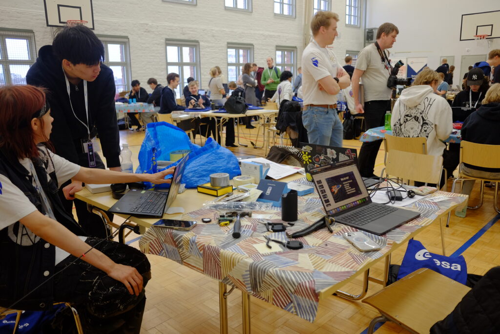 – The satellite landed in a muddy field so two of our teammates, Lukas and Antto, went to retrieve it but one of our teammates got stuck in the mud whilst the other got out. Jukka Lämsä had to go retrieve the teammate, Lukas, who got stuck in the mud.