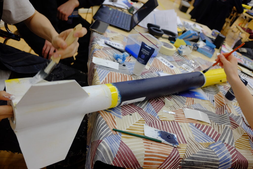 Five students from 9H have been building a satellite for a CanSat satellite competition. We arrived late Wednesday night to a hostel. On Thursday morning a bus took us to Åbo Akademi in Vaasa to get an introduction into the programme. We were given the day to finalise building the satellite and we painted the rocket that would launch it into the sky. Additionally, during the day our satellite had to undergo technical inspection in order to get the clear for launch, which we did, and we presented our cansat to the jury of the competition. But the final presentation with the results will be on Sunday, after which the winner will be decided. On Friday we will launch the rocket and satellite.
