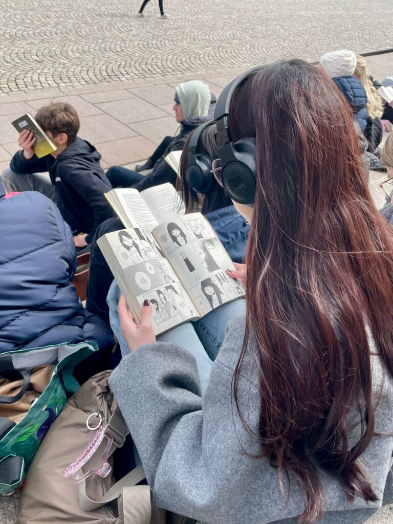 Lukiolaiset kutsuttiin osallistumaan Silent Book Clubiin, jossa sai lukea lempikirjaansa tunnin ajan kaikessa hiljaisuudessa Atriumissa.