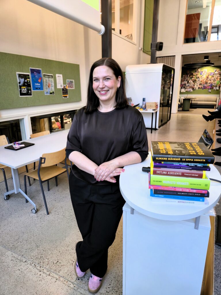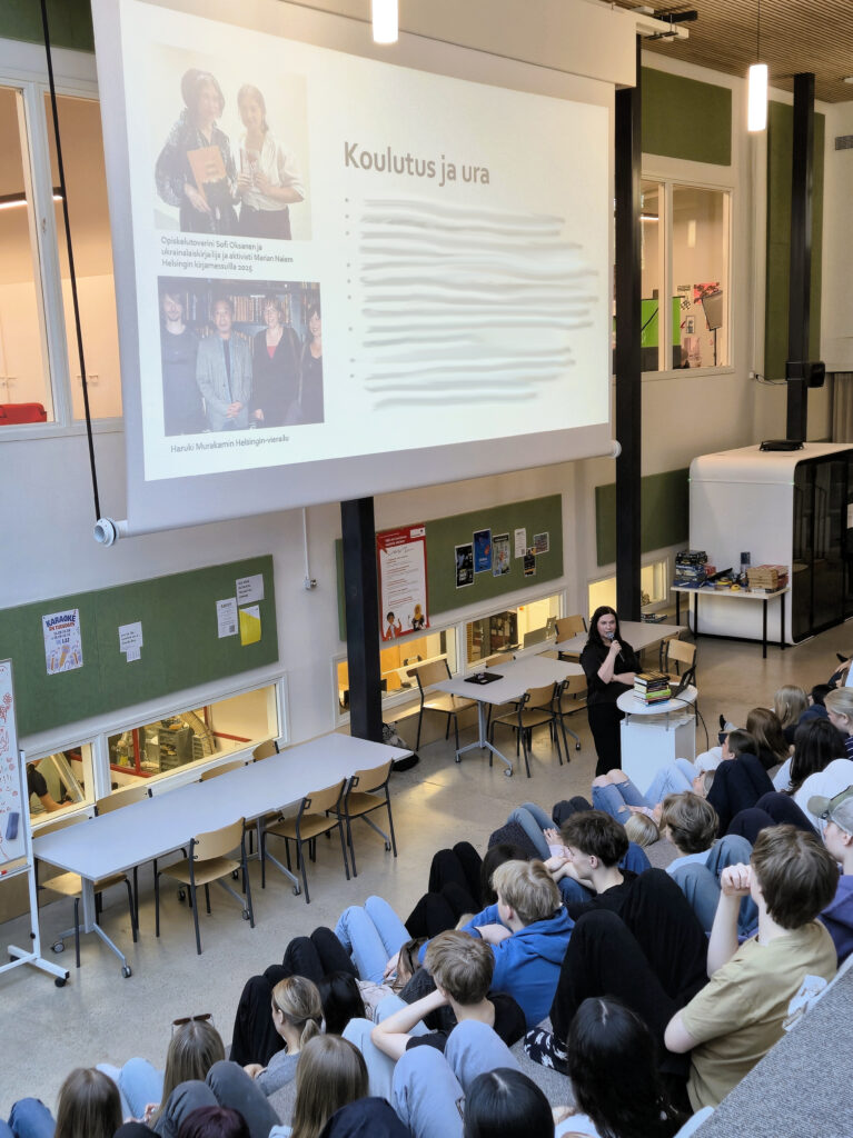 Tiistaina 21.4.2026 lukion lukuvieraana oli Tammen viestintäpäällikkö Johanna Harkkila.