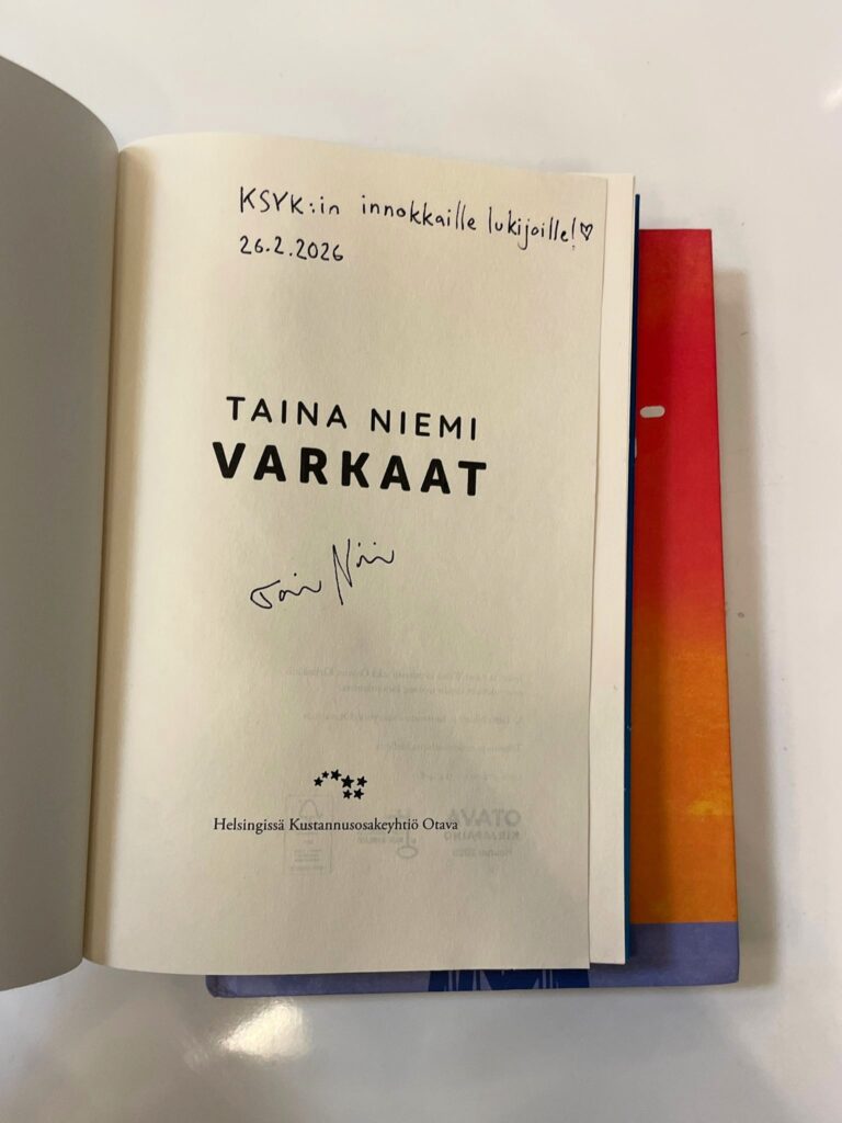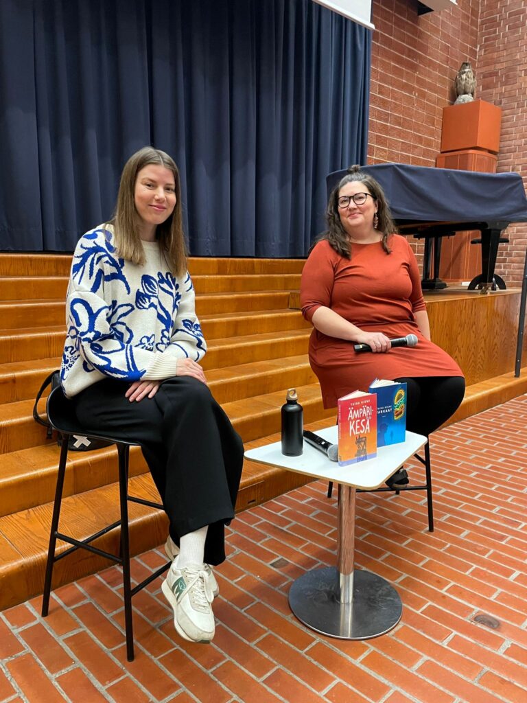 Nuortenkirjailija Taina Niemi vieraili koulullamme torstaina 26.2. kertomassa yläkoululaisille kirjoistaan ja niiden taustoista. Häntä haastatteli kieltenopettajamme Sanni Taskinen, joka on myös aktiviinen kirjallisuudenharrastaja. Tilaisuuksissa Niemi kertoi esimerkiksi siitä, miten hän on päätynyt kirjailijaksi sekä siitä, miten aikuinen voi kirjoittaa nuorille uskottavasti.