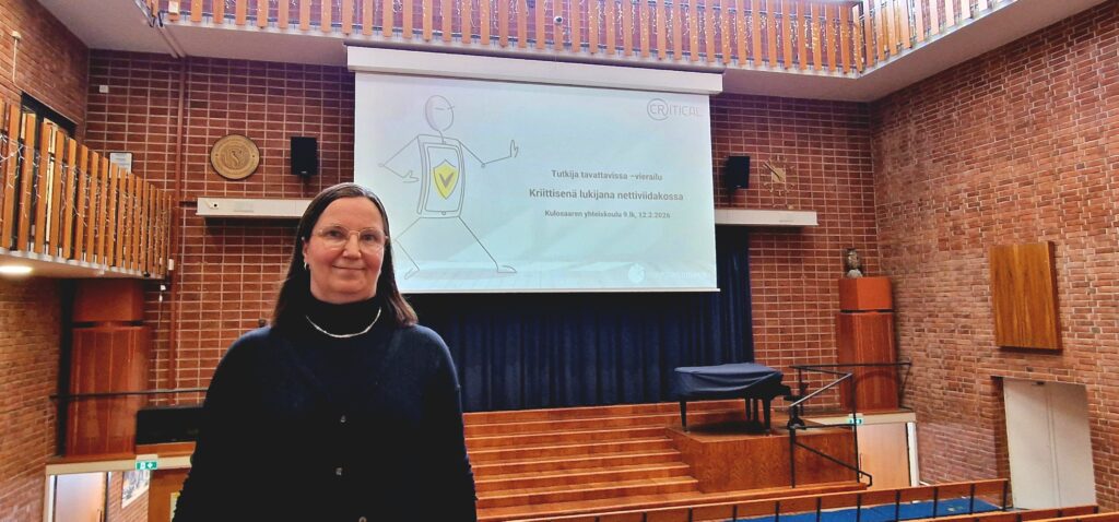 Ennen hiihtolomaa tutkija Helena Hämäläinen Jyväskylän yliopistosta piti 9. luokkalaisillemme Vihreä lippu -luennon otsikolla ”Kriittisenä lukijana nettiviidakossa”.