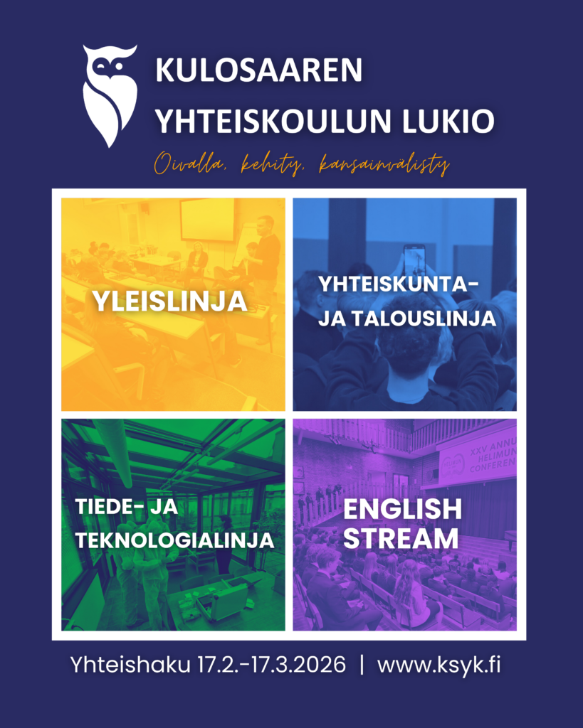 Kevään viimeinen lukio-info järjestetään tiistaina 10.2. kello 15.00 Atriumissa.