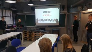Kaikista innokkaimmille koodareille päivä huipentui koulullamme iltapäivällä pidettyyn TT-linjan erikoiskurssin Koodi101 avausoppituntiin. Kyseisellä kurssilla Eficoden ammattilaiset tulevat koulullemme opettamaan modernia ohjelmistokehitystä uusimpia apuvälineitä hyödyntäen – ja olipa yksi kurssin opettajista itsekin lukiolainen, joka on aikoinaan päässyt Eficodelle töihin juuri kyseisen kurssin kautta! Odotamme mielenkiinnolla, minkälaisiin projekteihin TT-linjan koodariosasto pääseekään nelosjakson aikana…