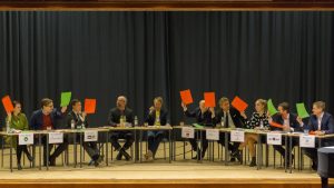 Keskustelu kävi paikoin hyvinkin vilkkaana, mutta edustajat pääsivät tiukan väännön jälkeen myös kehumaan toisiaan. Pallo heitettiin lopuksi meille nuorille, kun jokainen edustaja sai tehtäväkseen keksiä yksi sana, jolla luoda uskoa tulevaisuuteen. Hyvin perusteltuja valintoja päivän sanaksi olivat muun muassa edistys, ratkaisut, osaaminen, välittäminen ja unelmat.