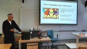 Tätä edeltävällä viikolla lähetystöneuvos Mika Kukkonen ulkoministeriön EU-osastolta valotti opiskelijoille EU:n roolia maailmanpolitiikassa.